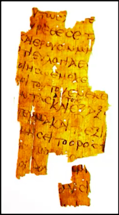 Romans 9? (unconfirmed identification by Scott Carroll; sometimes identified by Carroll as coming from the gospel of John). First appearance: 2016. Image displayed by Carroll in 2016. Assigned by Carroll to the second century CE. More info here.
