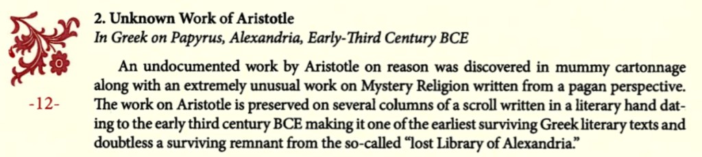 • If this is in fact the alleged “unknown work of Aristotle” that Scott Carroll has described on many occasions, I’m not sure who was editing it. It seems to be one of the Green Collection’s early acquisitions (at least as early as 2011), and as I’ve seen nothing about its provenance, I suspect it will be among those pieces that is being repatriated.