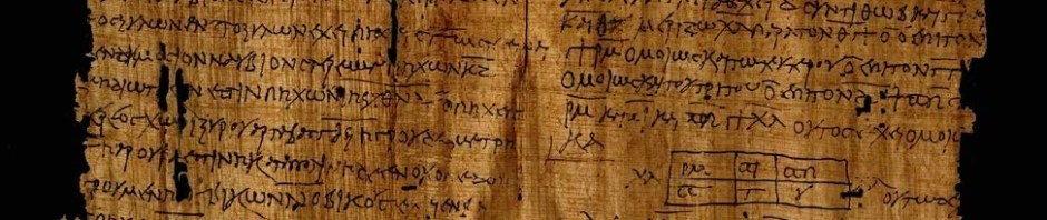 I see that later this month we can expect the publication of the Tchacos-Ferrini mathematical codex (LDAB 10719, now dubbed by the editors P.Math.). This codex travelled the antiquities market along with a papyrus codex of Exodus in Greek, a papyrus codex of the letters of Paul in Coptic, and the more famous papyrus codex containing the Gospel of Judas. All of the codices are said to have been found together in Qarara in Egypt in the 1970s, but the story is somewhat dubious (see God’s Library, pp. 95-96). The cover of the new publication gives us a first good look at the appearance of the mathematical codex, with an image of an intact bifolium: