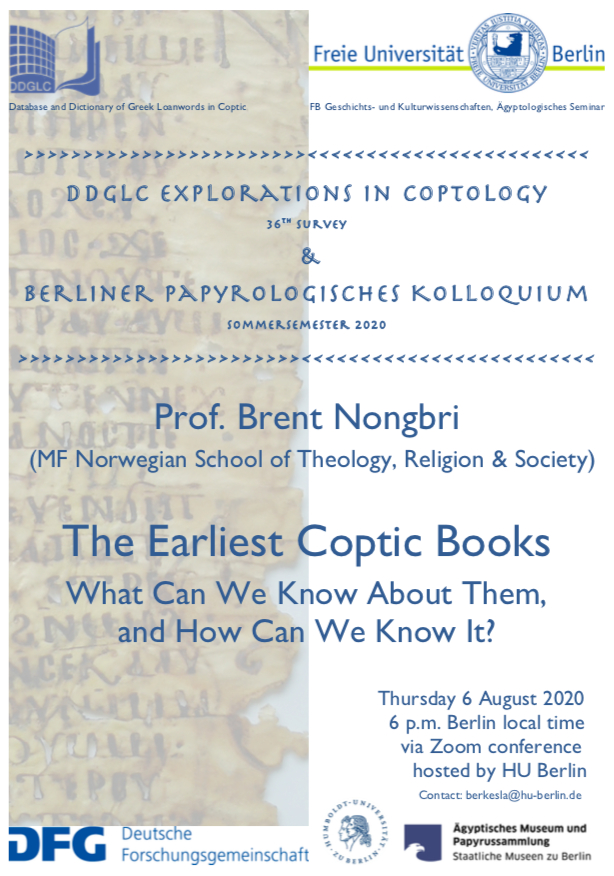 For those who might be interested, I will be giving a lecture on early Coptic books on 6 August at 6 pm (Berlin time).