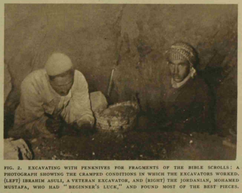 “In addition to Père de Vaux and myself, the actual work of excavation was carried out by Ibrahim Asuli, a veteran excavator of twenty-three years’ experience, Azmi Khalil, both of the Palestine Archaeological Museum, and Mohamed Mustafa, a Jordanian, and a newcomer to the profession. He had the usual beginner’s luck and found most of the best pieces.”