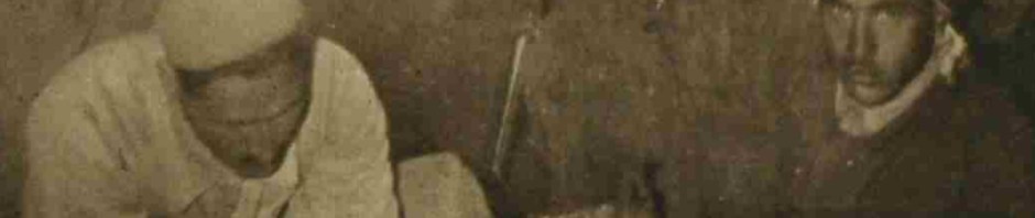 The label on the slide reads as follows: “Ain Feshka cave, BASOR 114; (1) interior of cave from the entrance (2) interior of cave from the entrance. Harding & de Vaux looking at box MSS fragment[s].” It is of course interesting to see de Vaux and Harding at work, but who are the others carrying out the excavation in these images? I came across yet another version of the photo on the left recently that answers this question. It has a caption naming the two excavators in the photo: Ibrahim Asuli and Mohamed Mustafa. It’s included in an article by Harding in the Illustrated London News: