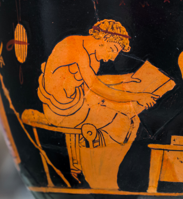 Attic red figure vase showing a youth reading a papyrus roll, Berlin Altes Museum (Antikensammlung) F2322 ; image source: Wikimedia Commons CC-BY-SA 4.0
