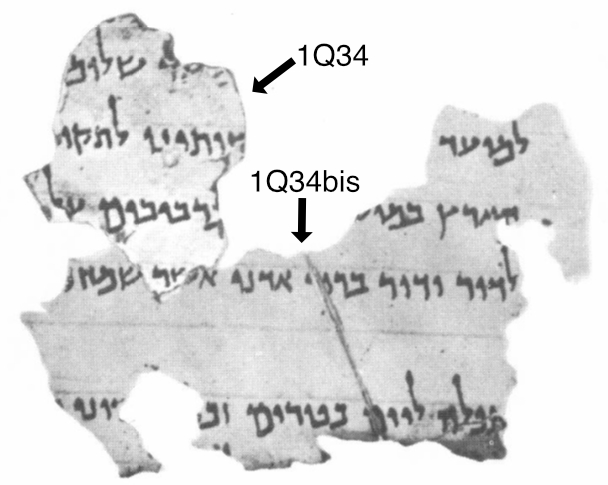 1Q34 and a portion of 1Q34bis; image adapted from John C. Trever, “Completion of the Publication of Some Fragments from Qumran Cave I,” Revue de Qumrân 5 (1965), plate IV