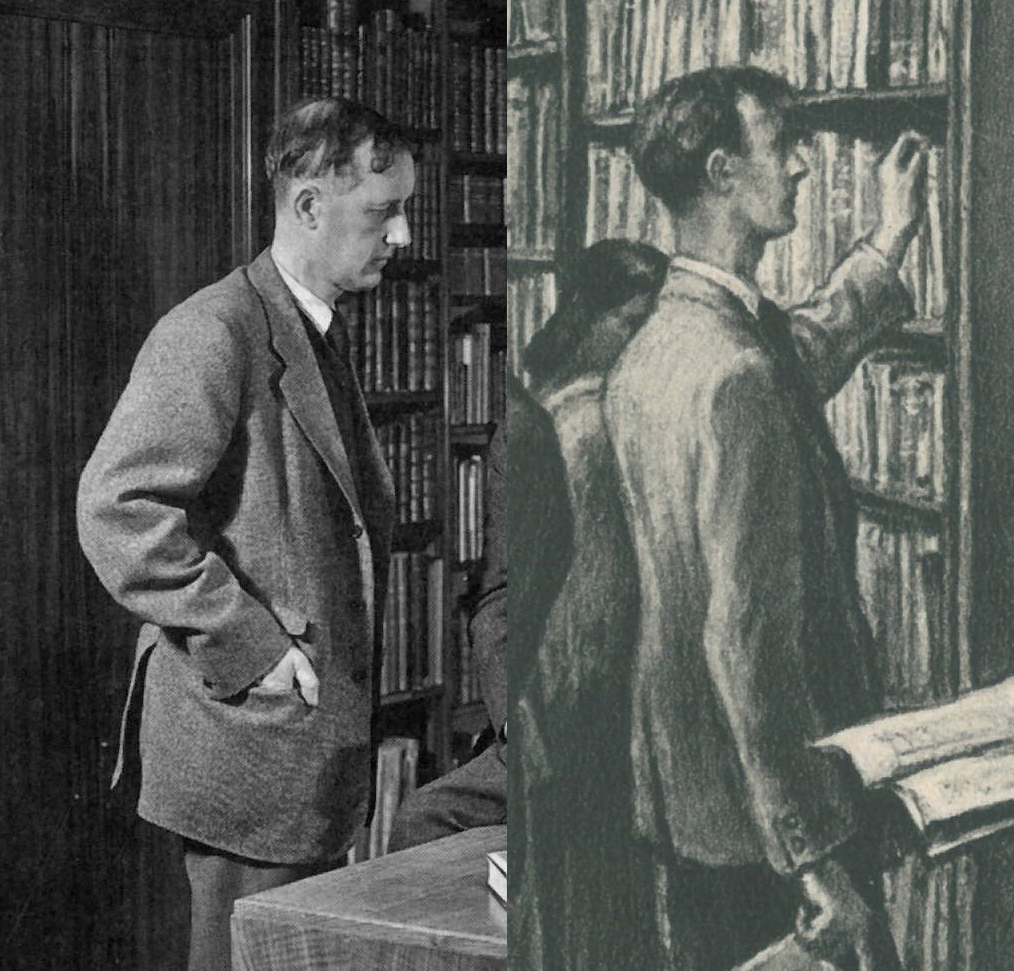 “His physique and what it told about his character were well caught…in the well-known Muirhead Bone view of Blackwell’s, in which he is one of the browsing scholars.”