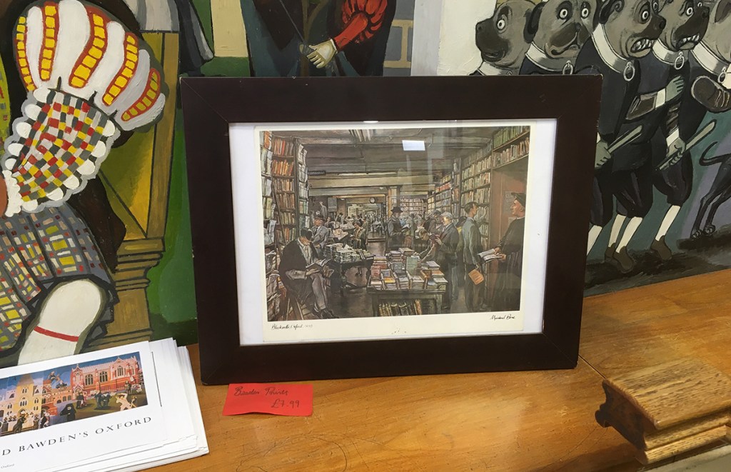 “Blackwell’s, Oxford, 1950” by Muirhead Bone; image April 2021