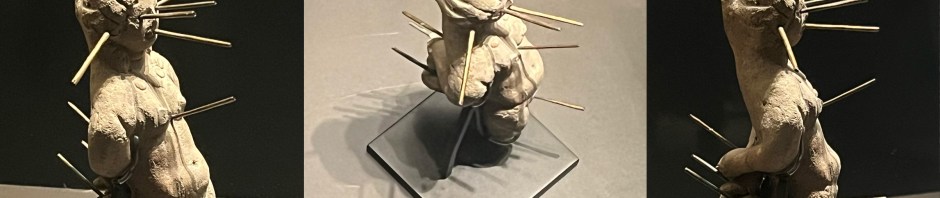 I had the opportunity recently to revisit an interesting artifact at the Louvre. It is a small nude female figurine with hands and feet bound, pierced through with thirteen pins. According to the Louvre website, the figurine was bought in 1975 from a person (or business?) identified as “Mathéos, Alkis Dimitrios,” about whom I know nothing (any leads are welcome). The seller reported that the figurine came from Egypt.
