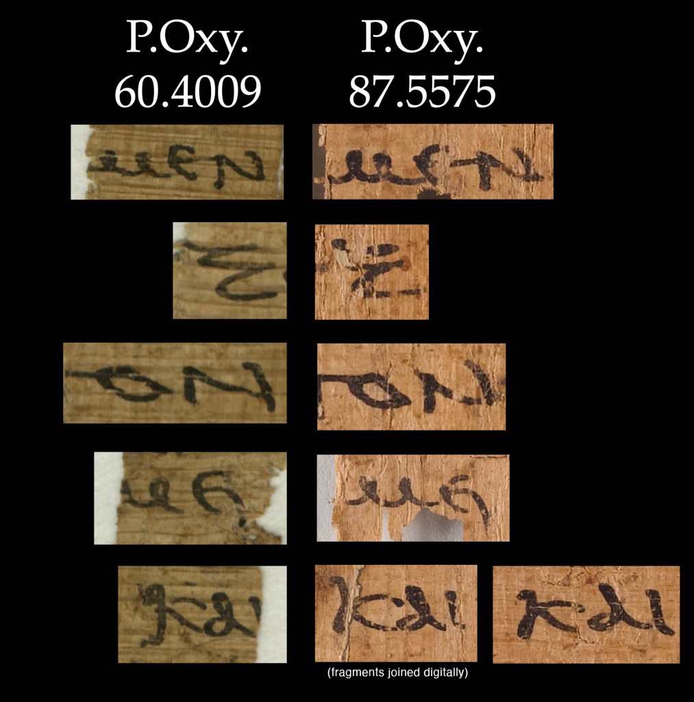 Each of these individual features could be paralleled pretty easily in other papyri, but the combination of all of them in both pieces and the level of graphic similarity on display here make me comfortable saying these two fragments were the work of the same copyist. There are occasionally some slight differences in the formation of some letters, but these all fall within what I would call a normal level of variation for any copyist.