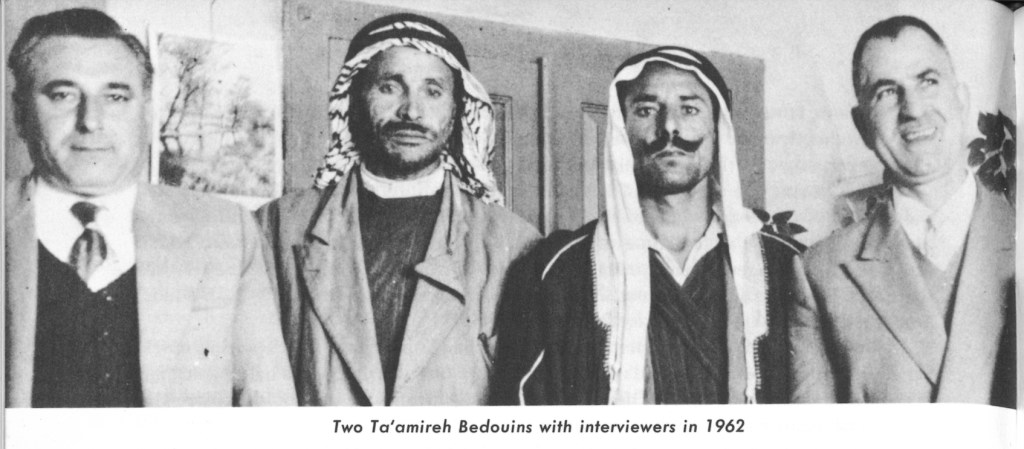 “Enclosed you will find a photo of the Bedouins Muhammad ed Deeb and Jum’a when they came to my home for the tape recording. The man beside me is Jum’a Muham[m]ad and the other one standing near Mr. Docmac is Muham[m]ad ed Deeb. The photo was taken on the roof of my home after lunch. You also find enclosed an approximate bill of the expenses.”1