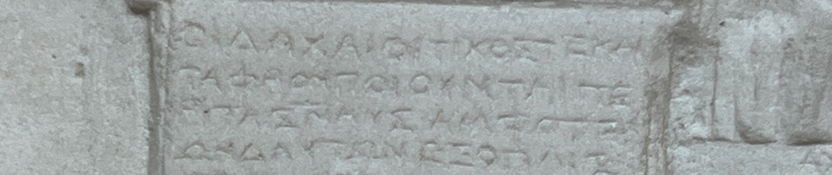 The text in the pilaster picks up in Book 7 (there was almost certainly another pilaster on the left side of the plaque that contained a summary of the earlier books). The summary is pretty dry. Here are the first few lines from the picture above (for the whole Greek text, see the edition of IG XIV 1284 at PHI):