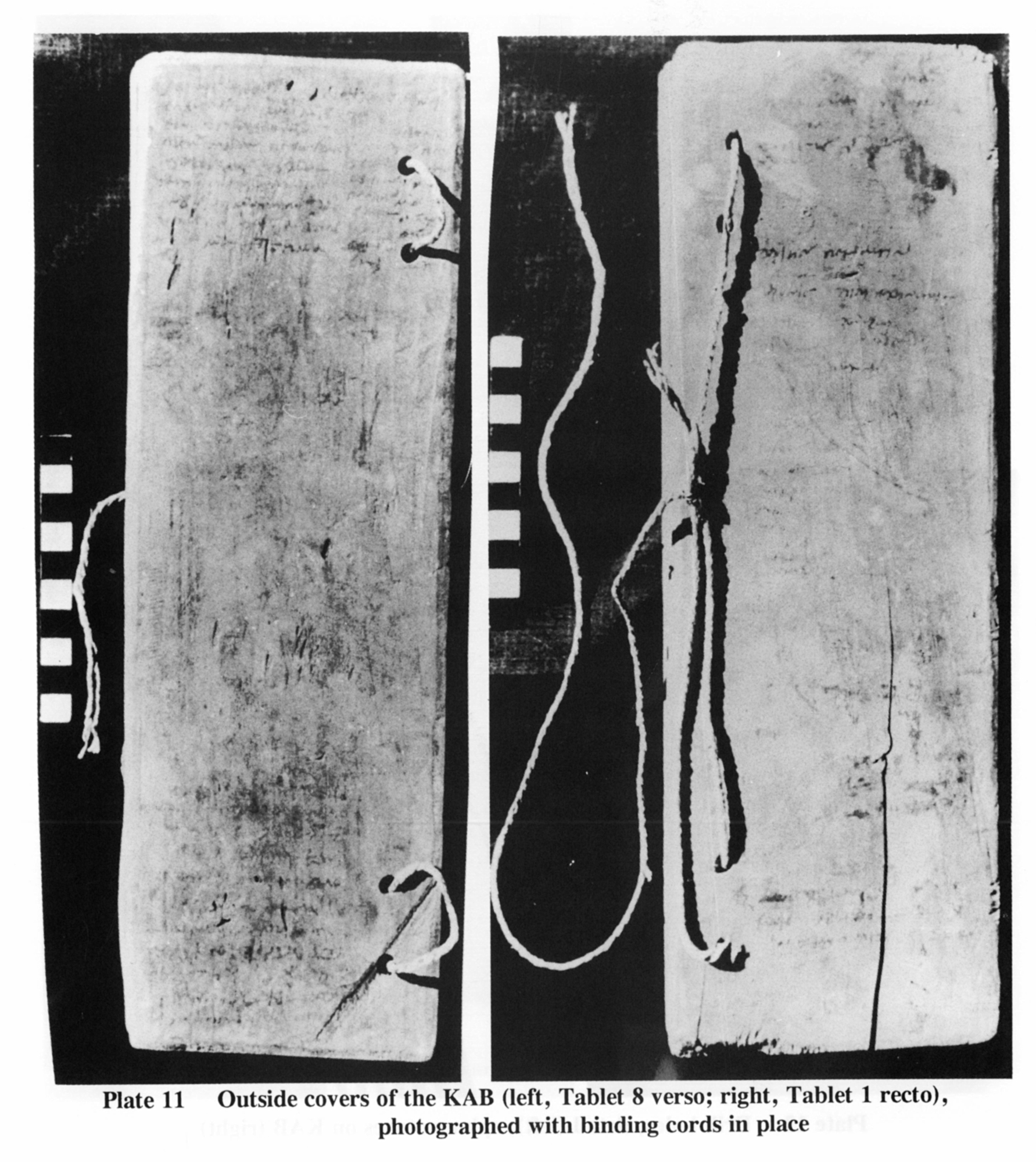For a long time, I assumed that sets of wooden tablets from the Roman era were bound in a fairly simple way, with a cord looped straight through the holes as we see in this set of tablets from Kellis that were found with the cord in place: