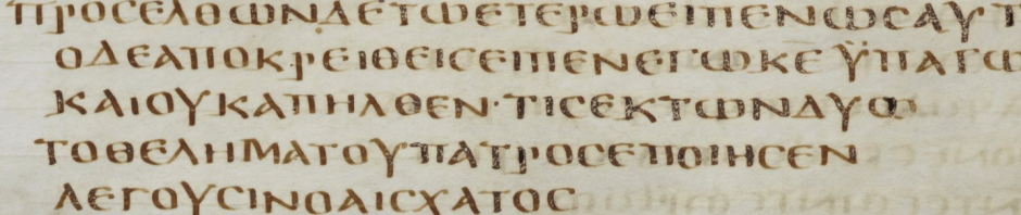 The banner is an image from Codex Bezae (University of Cambridge Library, MS. Nn.2.41, folio 71 verso), which has been digitized and is available online at the University of Cambridge Digital Library.