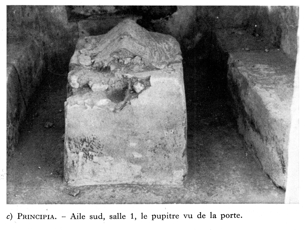 It’s helpful to be able to examine this corbel up close. Mary Jane Cuyler informs me that the reddish color on the menorah on the corbel is indicative of gilding, so these menorahs would have been a colorful addition to the torah shrine, which was itself decorated in different types of cut marble. Gold decorations also raise the question of reflection and lighting within synagogues, an issue discussed in a 2023 article by Karen Stern.