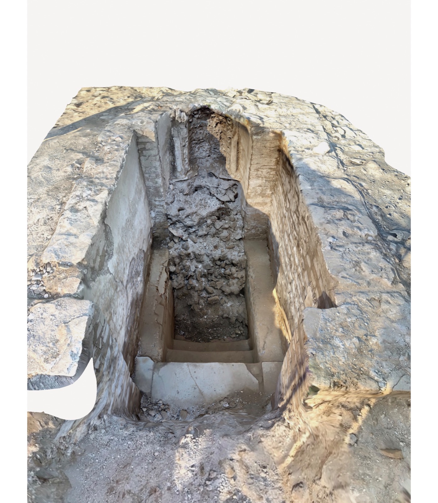 “Our first hypothesis is that the structure was a luxurious private residence, but it could have also been a public building. …We uncovered at least six rooms. Two of them are equipped with an oven to cook. We also found a latrine and another room that was probably a kitchen. These rooms overlooked a courtyard facing south. A staircase suggests that there were at least two floors.”