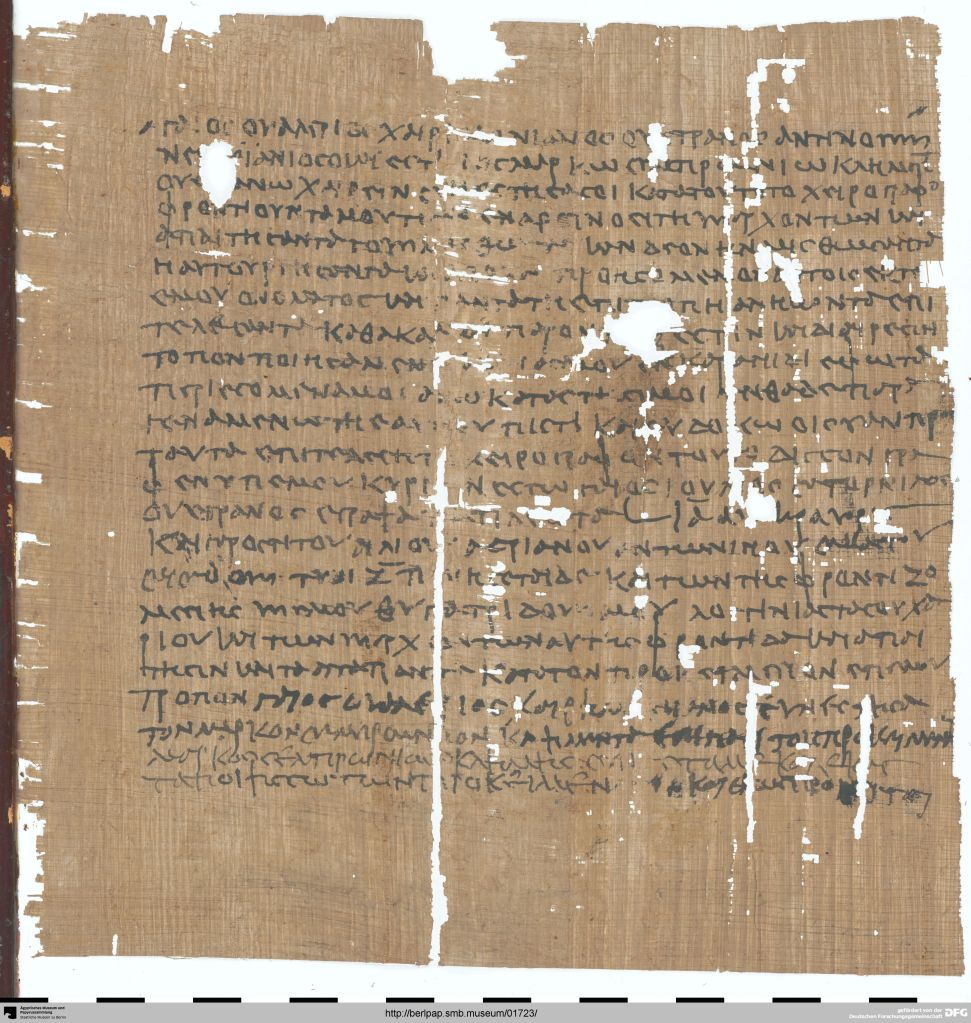 In any event, I don’t spend a lot of time reading Ptolemaic documents, so I don’t really have any insight into how that gap might be filled in an intelligible way, but given its lack of existence elsewhere in the papyrological record (so far), and the surviving ink traces here, I’m a little skeptical of χαρτοποιῶι.