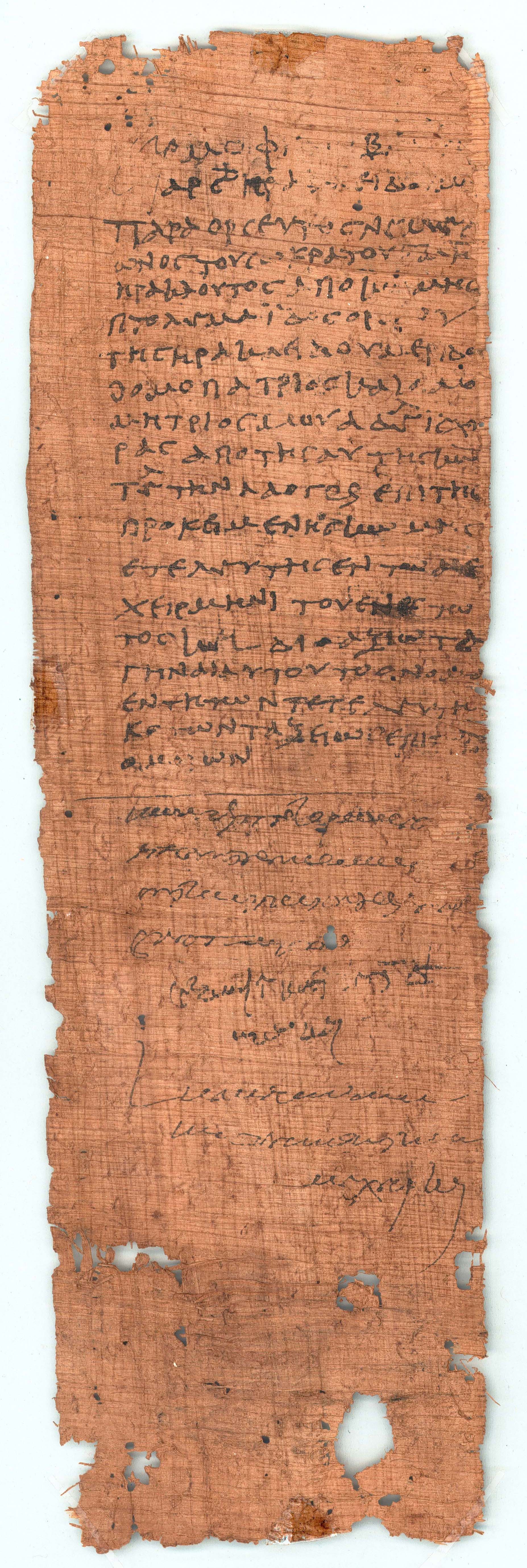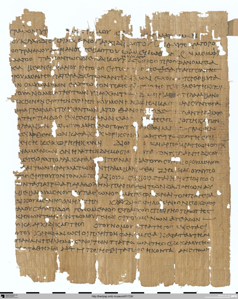 I don’t know of any other proposed restorations here. Ulrich Wilcken (Grundzüge, 1.1.255) resolved the abbreviation differently, proposing χαρτοπό(ληι) = χαρτοπώ(ληι), “papyrus seller,” but this word is just as poorly attested (and doesn’t solve the pi–omicron problem). Another thing that bothers me here is the meaning of διαγεγρ(αμμένων) (I’m not sure why papyri.info has διαγεγρ(αμμαμένων) with an extra syllable here). In his re-edition of the papyrus, Verhoogt translates as follows: